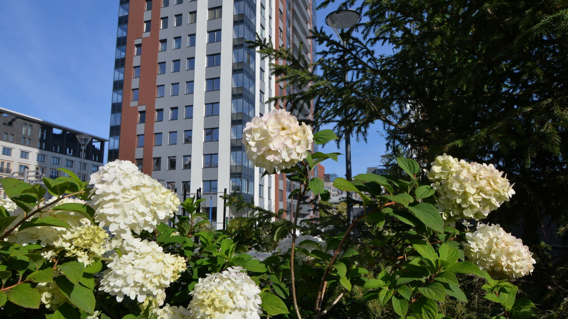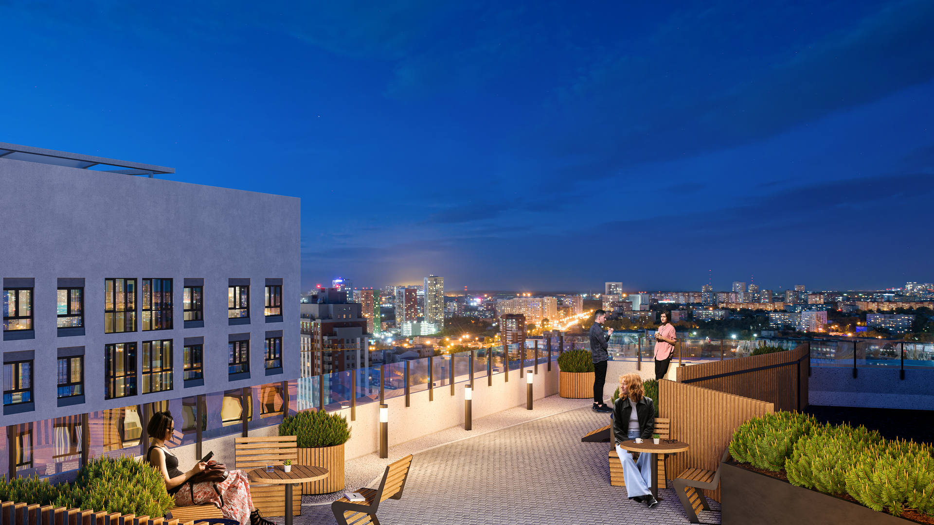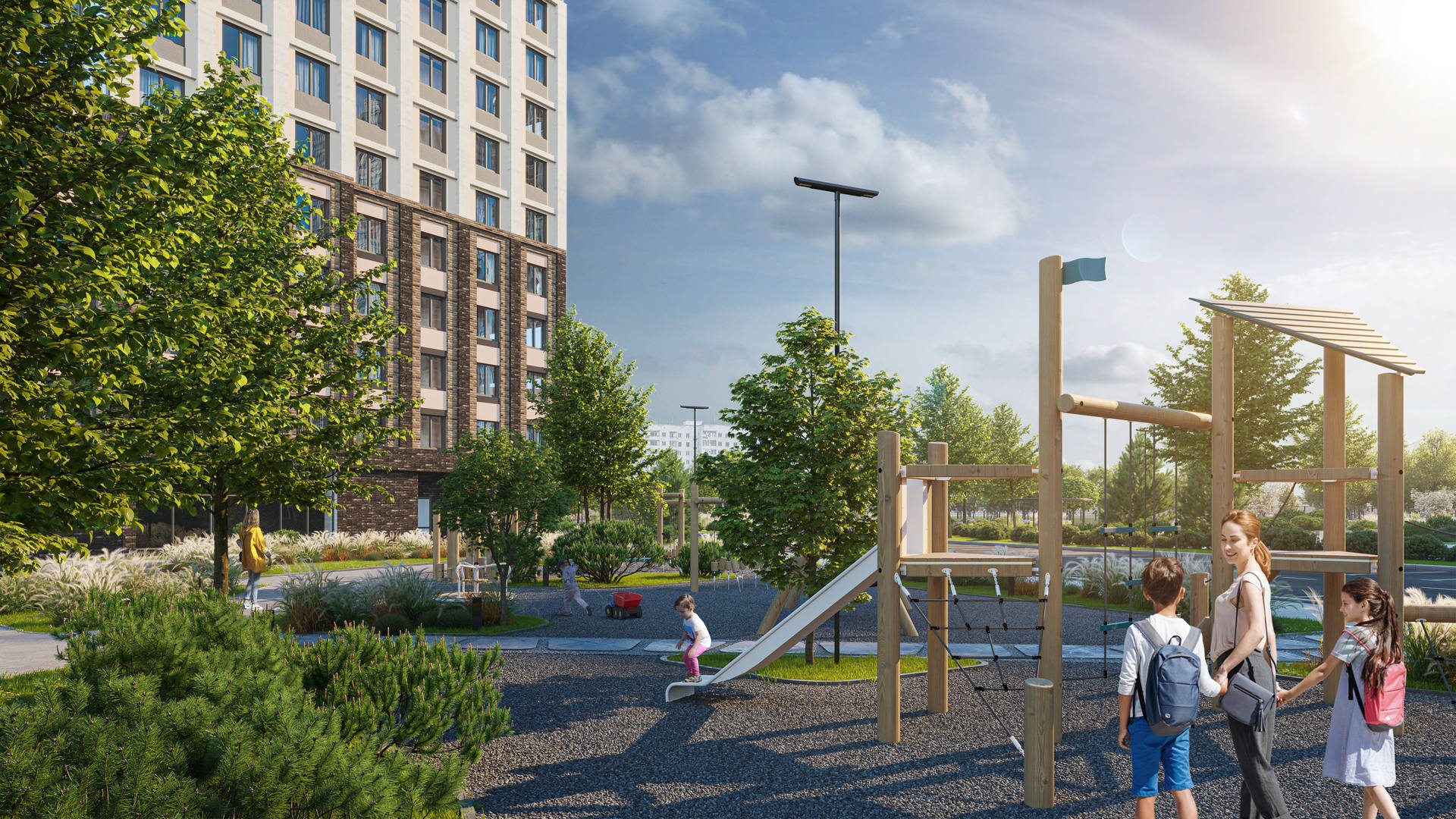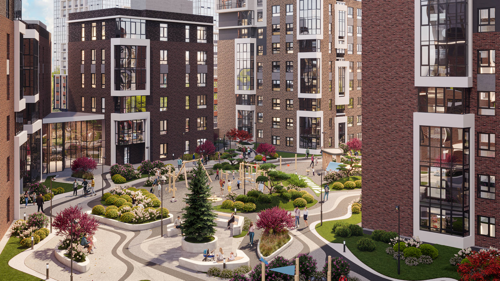 Выразительные фасады в духе новой классики. Первая очередь — ремейк сталинского ампира прямиком с исторических улиц города. Вторая очередь — современность с чистой геометрией и выразительными формами. Третья очередь — динамичное сочетание уютных урбан-вилл и современной высотной архитектуры. Четвертая очередь — амбициозные высотки и элитный клубный дом.